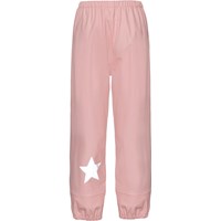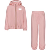 Zet is a rose coloured rainwear set. It has a detachable hood and zip closure on the front. The trousers have elastic at the waist and legs. Both the jacket and trousers have Molo's iconic star reflectors on the back. This product has a water resistant, PFC-free surface treatment (Does not contain,e.g. PFOS, PFOA, etc). Water column pressure: 8.000 mm. Parts of this Molo product are recycled because it is constructed in 50% reusable polyester. The recycled polyester is made of used plastic bottles and other waste materials. The production of reusable polyester uses less resources and emits less CO2, making Molo’s rainwear the sustainable choice.