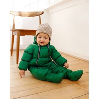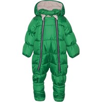 Soft and warm baby snowsuit or pram suit in bright green. The snowsuit is part of Molo’s 'Everyday Exploration’. It's outerwear for everyday adventures that stands out through its gorgeous details and beautiful colours. The snowsuit is, of course, also produced in responsibly recycled materials and lives up to Molo’s high standards for its outerwear.