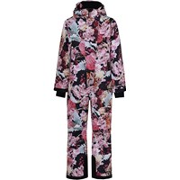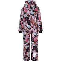 Hux is a snowsuit in a floral print with many functional details. It is perfect for skiing. The snowsuit has a detachable hood, a zip front closure with placket, reflectors on the sleeves and legs, a snow flap at the legs with room for ski boots and rubber stirrups at the feet. Hux also has zip pockets on the front and a pocket on the sleeve for a lift pass. This snowsuit is constructed in a windproof, waterproof and breathable quality and has 3M™ Thinsulate™. It has high quality fleece in vulnarable places and taped seams. This product has a water resistant, PFC-free surface treatment (Does not contain, e.g. PFOS, PFOA, etc). Its water column pressure and breathability has been improved and is now: water column pressure 15.000 mm and breathability: 15.000 g/m2/24hrs.