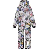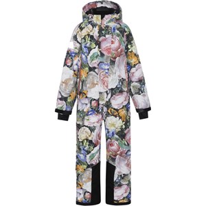 Hux is a snowsuit in a floral print. The snowsuit has many functional details and is perfect for skiing. Hux is perfect for extremely cold days but also ordinary winter days. The high level of breathability helps regulate a child's body temperature so it does not become too cold or over heated. On warmer winter days, a child can wear the jacket with a thin under layer, but on extremely cold days, you can add an extra layer underneath. Hux is also a good choice for less active moments. The snowsuit has a detachable hood, a zip front closure with placket, reflectors on the sleeves and legs, a snow flap at the legs with room for ski boots and rubber stirrups at the feet. Hux also has zip pockets on the front and a pocket on the sleeve for a lift pass. The snowsuit is windproof, waterproof and breathable and has taped seams. The outer fabric is made from 45% recycled polyester, the 3M™ Thinsulate™ padding from 83% recycled polyester and the lining from 100% recycled polyester. This product has a water resistant, PFC-free surface treatment (Does not contain, e.g. PFOS, PFOA, etc). Water column pressure: 15.000 mm. Breathable: 15.000 g/m2/24hr.