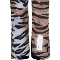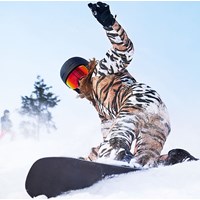 Hux is a snowsuit in a tiger print with many functional details. It is perfect for skiing. The snowsuit has a detachable hood, a zip front closure with placket, reflectors on the sleeves and legs, a snow flap at the legs with room for ski boots and rubber stirrups at the feet. Hux also has zip pockets on the front and a pocket on the sleeve for a lift pass. This snowsuit is constructed in a windproof, waterproof and breathable quality and has 3M™ Thinsulate™. It has high quality fleece in vulnarable places and taped seams. This product has a water resistant, PFC-free surface treatment (Does not contain, e.g. PFOS, PFOA, etc). Its water column pressure and breathability has been improved and is now: water column pressure 15.000 mm and breathability: 15.000 g/m2/24hrs.