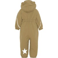Hyde is Molo's new, green unisex snowsuit for small children. Hyde is part of Molo’s Outdoor-Proof line for active children. The snowsuit is perfect for moderately cold winter days. On very cold days, layer Hyde with a toasty fleece top underneath. The snowsuit has reflective piping and Molo's iconic star reflectors on the side and the back. It has a slanted zip closure on the front. Hyde is windproof, waterproof and breathable and has taped seams. This product has a water resistant, PFC-free surface treatment (Does not contain, e.g. PFOS, PFOA, etc). Water column pressure: 10.000 mm. Breathable: 8.000 g/m2/24hr.