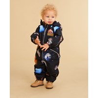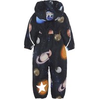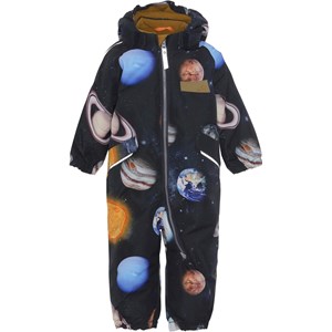 Hyde is Molo's new, dark blue unisex snowsuit with planets for small children. Hyde is part of Molo’s Outdoor-Proof line for active children. The snowsuit is perfect for moderately cold winter days. On very cold days, layer Hyde with a toasty fleece top underneath. The snowsuit has reflective piping and Molo's iconic star reflectors on the side and the back. It has a slanted zip closure on the front. Hyde is windproof, waterproof and breathable and has taped seams. This product has a water resistant, PFC-free surface treatment (Does not contain, e.g. PFOS, PFOA, etc). Water column pressure: 12.000 mm. Breathable: 8.000 g/m2/24hr.