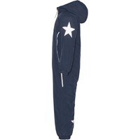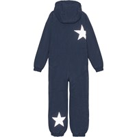 Unisex snowsuit that is perfect for everyday wear and active children. The snowsuit has many qualities like extremely high-water column pressure and breathability that keeps a child warm and dry in the cold months. The snowsuit is a part of Molo’s 'Outdoor Proof' collection, which is outerwear for more moderate winter weather. It lives up to Molo’s high standards for its outerwear with the same functional details and quality fabrics that Molo is known for. This snowsuit is, of course, also produced in responsibly recycled materials. This Pingo is dark blue.