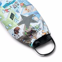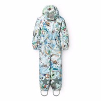 Wind and waterproof jumpsuit with a pixelated print of the real world, fun characters from Molo's collections made in recycled polyester. The jumpsuit has a detachable hood with fleece, front pockets with wind flaps, front zippers with flaps and chin guard to prevent skin from getting caught. The jumpsuit has internal elastic straps and elastic at the sleeve and leg openings to ensure it fits correctly and effectively keeps snow, rain, and wind out. The suit is equipped with reflective tape and two large stars on the legs for visibility in traffic. Furthermore, the jacket is lined with recycled polyester fleece, 3M™ Thinsulate™, which helps retain heat.