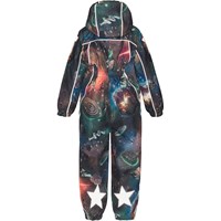 There's a reason Polaris is one of Molo's most beloved snowsuits: It has achieved best-in-test status and has been one of the best snowsuits on the market for many years. This is not only because of its many qualities, like extremely high-water column pressure and breathability, but also because Polaris always comes in beautiful prints and colours that children love. Molo doesn't compromise on anything when it comes to this snowsuit, and it is constructed in responsibly produced, recycled materials. This Polaris is in space print with spaceships and planets.