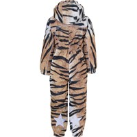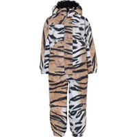 Polaris is a Molo favourite for cold weather. Polaris is a functional snowsuit in a tiger print with reflective piping and Molo's iconic star reflectors on the sleeves and legs. Polaris has a detachable hood, a front zip closure with placket, elastic at the back, snow flaps at the leg openings and rubber stirrups under the feet. The snowsuit is constructed in a windproof, waterproof and breathable quality with 3M™ Thinsulate™. It has high quality fleece in vulnerable places and taped seams. This product has a water resistant, PFC-free surface treatment (Does not contain, e.g. PFOS, PFOA, etc). Water column pressure: 15.000 mm. Breathability: 15.000 g/m2/24hrs.