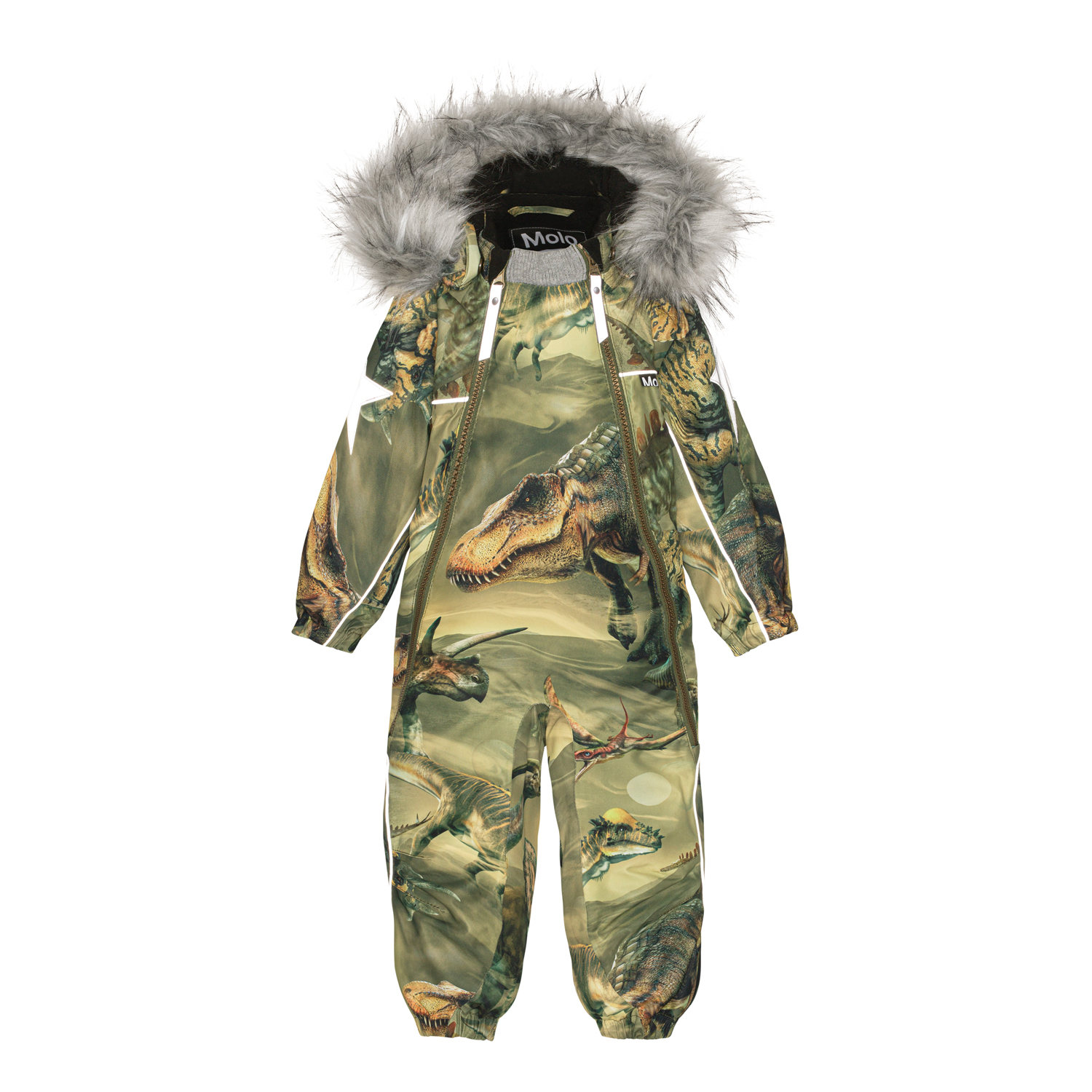 Pyxis is one of Molo's most well-known and beloved snowsuits that is perfect for young children. The snowsuit has many features, like extremely high-water column pressure and breathability, and with its beautiful prints and colours, it's a sure winner every year. Molo doesn't compromise on any details when it comes to this snowsuit, and it is, of course, also produced in responsibly recycled materials. This Pyxis is in green with a dinosaur print.