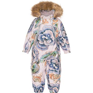 Pyxis is one of Molo's most well-known and beloved snowsuits that is perfect for young children. The snowsuit has many features, like extremely high-water column pressure and breathability, and with its beautiful prints and colours, it's a sure winner every year. Molo doesn't compromise on any details when it comes to this snowsuit, and it is, of course, also produced in responsibly recycled materials. This Pyxis is pink in a print of mushrooms that look like flowers.