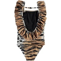 Nathalie is Molo's new swimsuit here in a tiger print. Nathalie has lovely ruffles at the sides and a deep back. Molo's swimwear has a UV protection of 50+. The product is CE-marked and tested according to standard EN-13758-1.