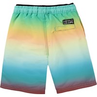 Swim shorts in gradient shades of yellow, turquoise and green. The swim shorts are in 100% recycled polyester and have ties and a wide elastic at the waist. They have side pockets, a practical back pocket and a Molo Swim label at one leg opening. The swim shorts are in loose fit. Molo's swimwear has 50+ UV protection. The product is CE-marked and tested according to standard EN-13758-1.