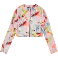 Nellie is a cool, new UV rashguard with long sleeves and a zip front. Nellie is a new approach to swimwear with its sporty vibe. It also protects against the sun's harmful rays with +50 UV protection that all Molo's swimwear has. Nellie comes in the 'Cockatoos' print. It is comfortable and lightweight to ensure easy movement. Wear it with trunks for a cool beach look. The product is CE-marked and tested according to standard EN-13758-1.