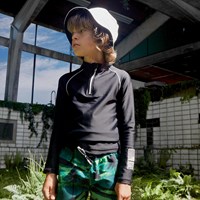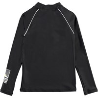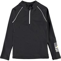 Noble is Molo's new UV rashguard with a sporty look and long sleeves. This Noble style is in black with a white zipper at the neck and with white piping. It protects against the sun's harmful rays. The top is lightweight and comfortable and easy to move around in. Wear it with matching shorts for a cool, surfer look. Molo's swimwear has a UV protection of 50+. The product is CE-marked and tested according to standard EN-13758-1.