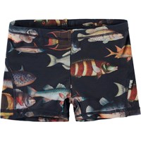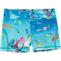 Norton is a pair of short swim shorts in turquoise with a fish print. They are comfortable to move around in and have inner ties. Mix with a matching t-shirt for extra protection on top. Molo's swimwear has 50+ UV protection. The product is CE-marked and tested according to standard EN-13758-1.